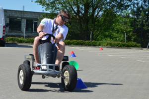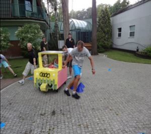 Wyścig na byle czym – to scenariusz zewnętrzny, który łączy integrację z rywalizacją. Zadaniem grup jest zbudowanie pojazdów do wyścigu o Złoty Tłok. Aby zdobyć elementy do budowy, uczestnicy muszą wystartować w wielu atrakcjach integracyjnych, nasączonych adrenaliną. Za wykonanie każdego zadania, grupa otrzyma od instruktora wskazówki jak i niezbędne przybory do zbudowania własnego pojazdu/łodzi (gwoździe, deski, koła, podwozie, elementy karoserii, farby itp.).